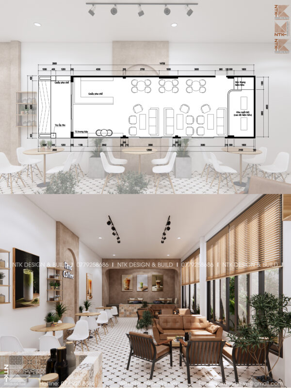 NTK38 – Thiết kế quán cà phê tại Bảo Lộc – Không gian nội thất ấm áp, hiện đại
