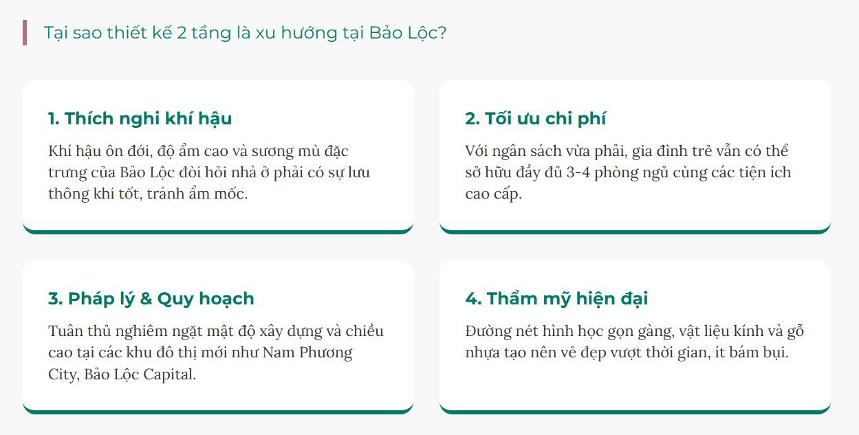 Bảo Lộc, trung tâm hành chính mới của tỉnh Lâm Đồng, đang chứng kiến sự phát triển mạnh mẽ về hạ tầng và kinh tế, kéo theo nhu cầu về không gian sống chất lượng. Tuy nhiên, quỹ đất hạn chế tại các khu vực trung tâm như Phường 1, Phường 2, Lộc Sơn với những lô đất “hình ống” đặc trưng là một thách thức không nhỏ.